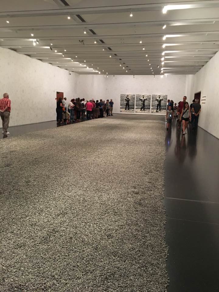 Вот, например, огромная инсталляция «Семена подсолнечника» – не много не мало, сто миллионов семян, изготовленных из фарфора и раскрашенных вручную. Вес инсталляции – 23 тонны, и впервые она была показана в Лондоне в 2010 году. Разумеется, в подготовке инсталляции художнику помогали подмастерья – в этом случае речь идет о 1600 работниках, которые трудились не покладая рук. Эта инсталляция метафорически отсылает нас к теме председателя Мао, «красного солнца наших сердец», и подсолнуха – цветка, следующего за солнцем.