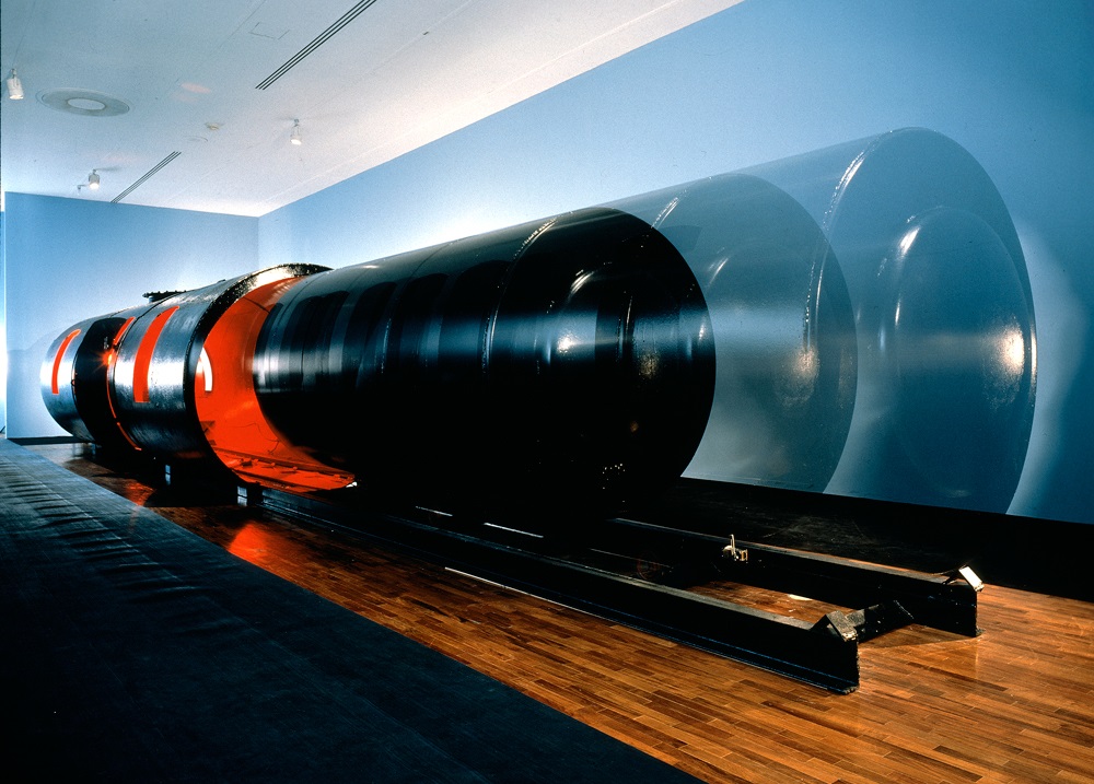 Ее название можно перевести как «Двое» или «Двойственность» – это уж как кому больше нравится. Многие из полусотни работ, выставленных в Тель-Авивском музее, представляют собой парные композиции, в том числе и скульптура Twosome, название которой получила и вся экспозиция. Эта работа создана в 1991 году и впервые была представлена в Нью-Йорке, в Музее современного искусства MoMA. Работа эта экспонируется редко, но до Тель-Авива добралась. Она представляет собой два внушительных размеров цилиндра, залитых мерцающим красным светом, малый резервуар по рельсам движется внутри большого, все вместе создает не только постоянное движение, но и равномерный гул, сопровождающий выставку.