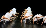 В описании спектакля указаны два акта, но на самом деле это непрерывное танцевальное действие, когда классика буквально взрывается модерном: вот только что оттанцевали, отпорхали воздушные лебеди в традиционных пачках – и тут же пространство сцены заполняют танцовщики в трико цветов земли и пепла, а ломаные линии их танца резко контрастируют с предыдущим зрелищем.