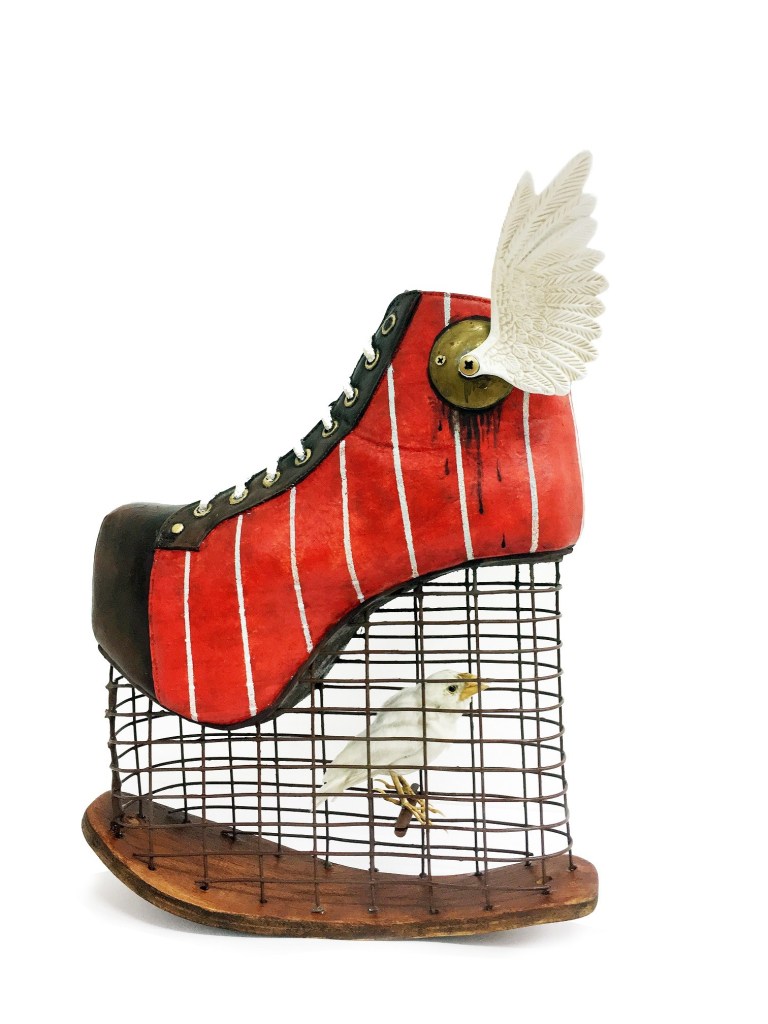 Все арт-объекты этой экспозиции представляют собой… пары женской обуви, с той лишь поправкой, что эти туфли не предназначены для ношения, а, по замыслу их авторов и куратора выставки должны продемонстрировать историю борьбы женщин за свои права.