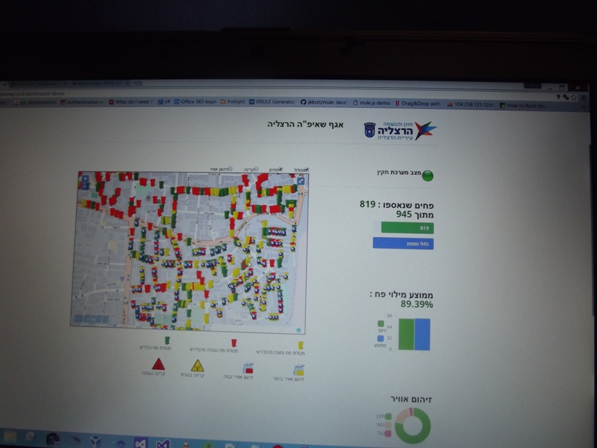 Особый интерес вызывают стартап-проекты, которые впоследствии могут получить широкое применение. Итамар Сегаль, дата-аналитик стартап-компании GreenQ, рассказал о пилотном проекте, который осуществляется в израильском городе Герцлия. Речь идет о системе собирающей данные о работе мусороуборочных машин, снабженных специальными датчиками, позволяющими собирать и анализировать информацию. Пока в пилотном режиме действует одна такая машина. Принцип работы прост: в момент опорожнения мусорного бака в информационный центр передается информация, которая позволяет впоследствии оптимизировать работу по уборке мусора: объем мусора, который выбрасывают жители того или иного района, изменения в количествах в зависимости от времени года, праздников, близости общественных зданий, таких, как школы и детские сады, и т.п. На основе собранной информации выдаются рекомендации: где-то нужно добавить мусорные баки, в другом месте заменить их баками большей вместительности, а где-то, напротив, поставить баки меньшего объема. По словам Итамара, необходимо изучать бытовые привычки жителей района на протяжении нескольких месяцев, чтобы выстроить оптимальный алгоритм, с помощью которого будет обеспечена быстрая и бесперебойная работа.