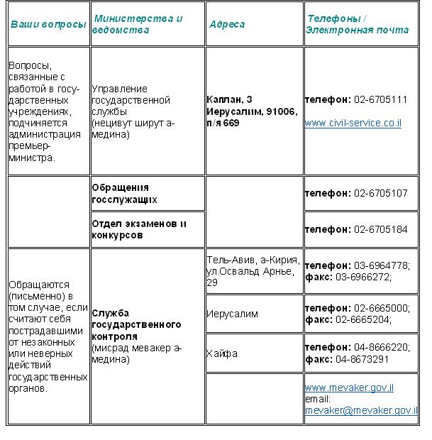 Информация о деятельности некоторых организаций и учреждений в Израиле, куда чаще всего обращаются репатрианты для решения самых разнообразных вопросов.