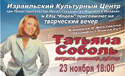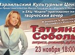 Израильский культурный центр при Представительстве посла Государства Израиль в Молдове и ЕКЦ «Кедем» приглашают на творческий вечер актрисы театра и кино Татьяны Соболь. Подробнее >>