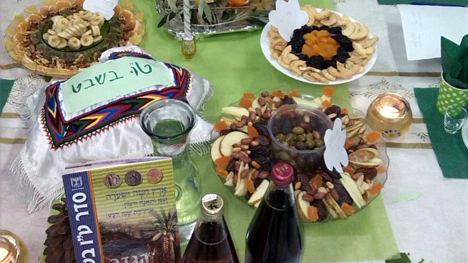 Masa pentru ceremonia Tu bi-Șvat. Foto: Kohava Levi, PikiWiki Israel.