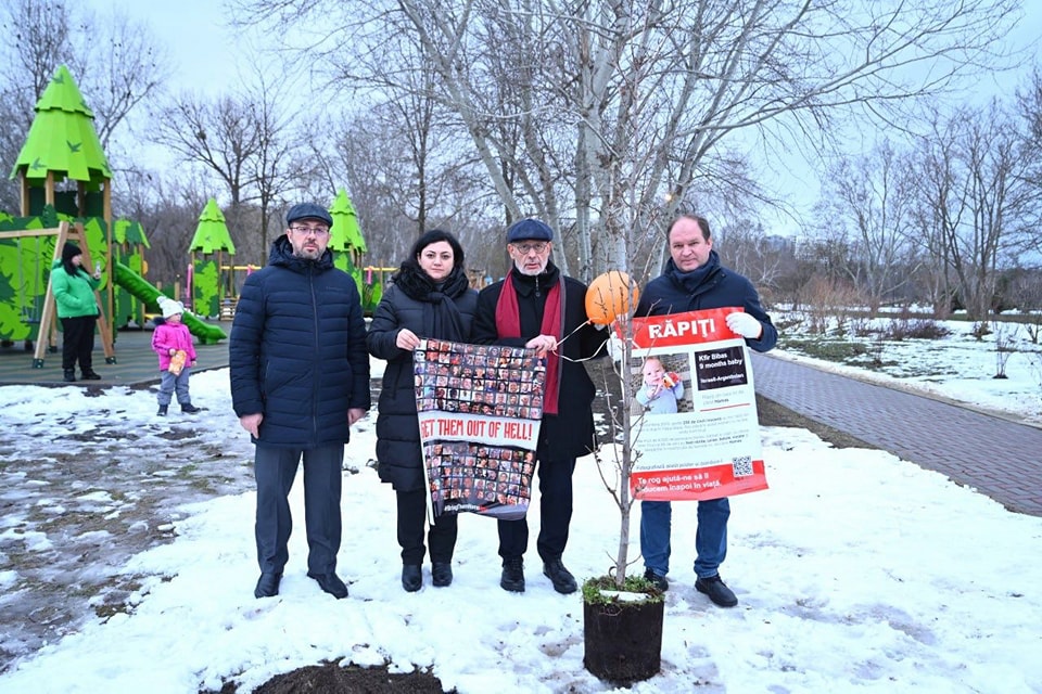 Его Превосходительство Йоэль Лион, Посол Израиля в Молдове, и Ион Чебан, мэр города Кишинева, вместе посадили дерево в знак поддержки Израиля и усилий по разрешению кризиса с заложниками. Посол Израиля привязал к ветвям дерева оранжевый шарик как символ, напоминающий о рыжеволосом Кфире Бибасе, который отметил свой первый день рождения в плену ХАМАСа в Газе.