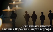 4 ияра по еврейскому календарю в Израиле отмечается государственный день траура — День памяти павших в войнах Израиля и жертв террора (Йом ха-Зикарон). Подробнее >>