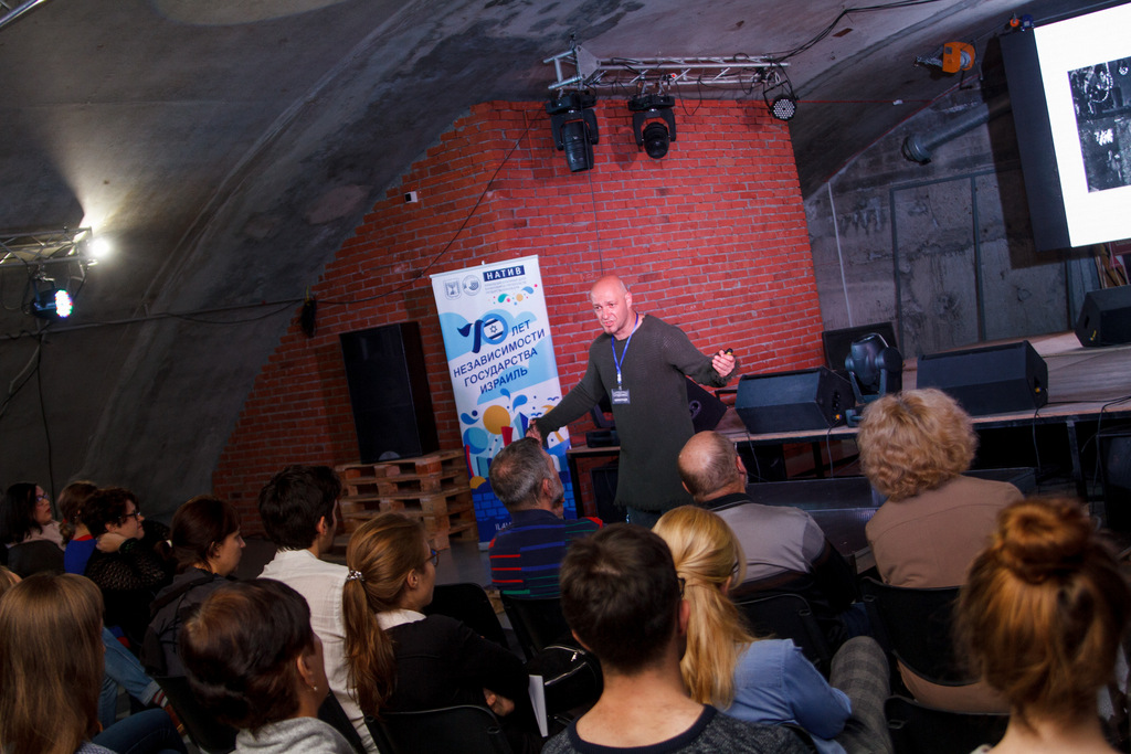 Авторские лекции, не академические, тем и хороши, что в них главенствует творческая личность лектора, его взгляд, нестандартный угол зрения и подачи информации. И логично, что свой цикл лекций о современном Израиле Зеэв Волк начал именно с искусства, как способа самовыражения каждого человека: как оно помогало людям создавать свое государство, переживать трагедии, обсуждать смелые вопросы. Что такое еврейское национальное искусство вообще? Каковы особенности израильского искусства и его современных направлений — Зеэв говорил увлеченно, демонстрируя множество примеров. Было ощущение, что слушатели и не в зале вовсе, а на экскурсии, в особой атмосфере музея современного искусства.