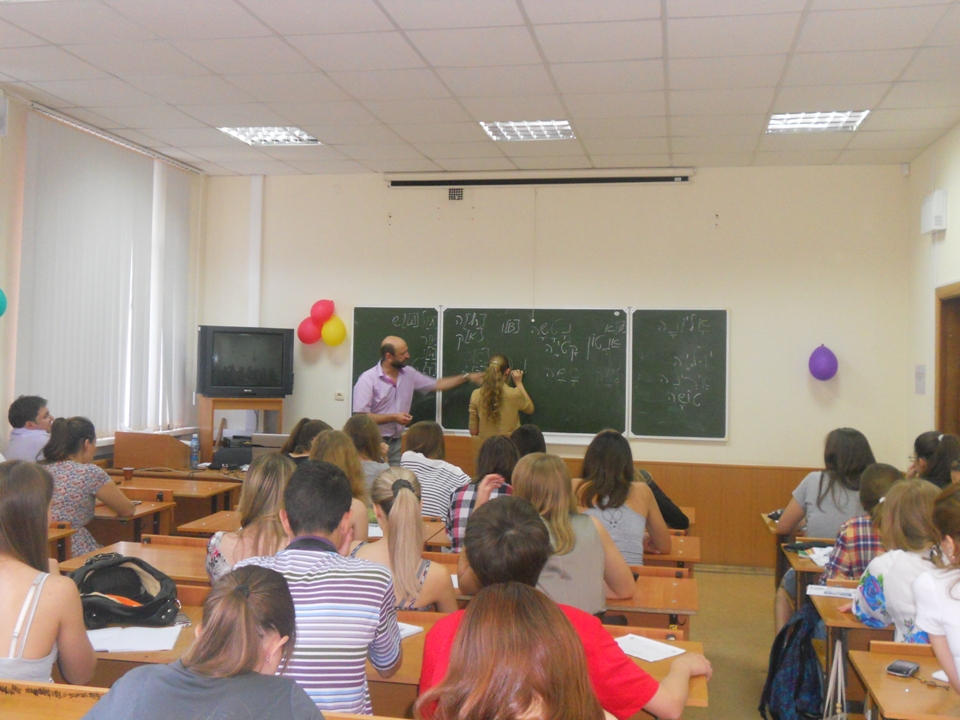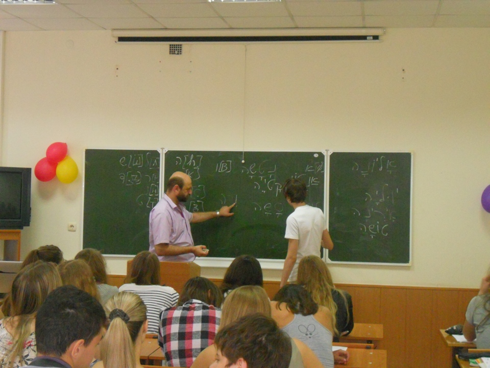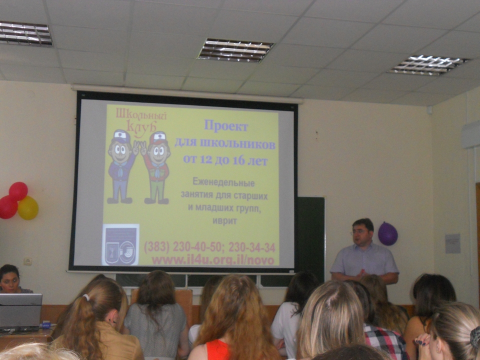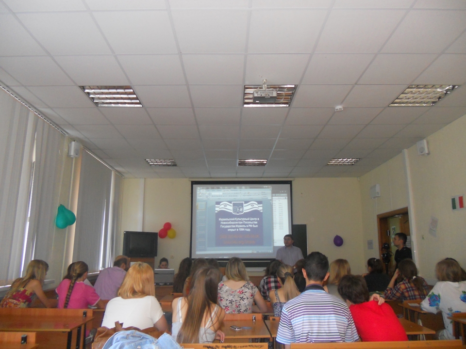 Израильский Культурный Центр в Новосибирске воскресным утром 8 июля на факультете иностранных языков НГУ в рамках ежегодной Летней Лингвистической Школы организовал первый День государства Израиль и языка иврит для школьников 8-11 классов. На это мероприятие собралось около пятидесяти школьников из Новосибирска и городов Сибири, интересующихся иностранными языками, а также традициями и культурой разных стран.