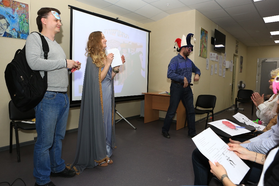 Экспромтная театрализация Свитка Эстер, постановочные анекдоты, исполненные на иврите, заставили хохотать всех, даже учеников тех групп, которые занимаются немногим больше месяца.