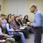 Один из наших преподавателей, Марк Таловский, подготовил краткий экскурс по истории создания, забвения и чудесного возрождения языка иврит, и всего через несколько минут общения с Марком участники встречи уже могли отвечать ему на иврите. Конечно, буквально несколько фраз, но сколько впечатлений!