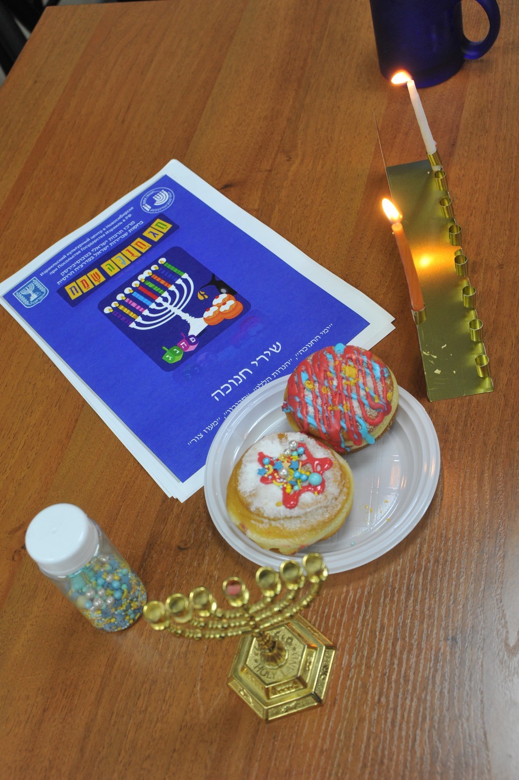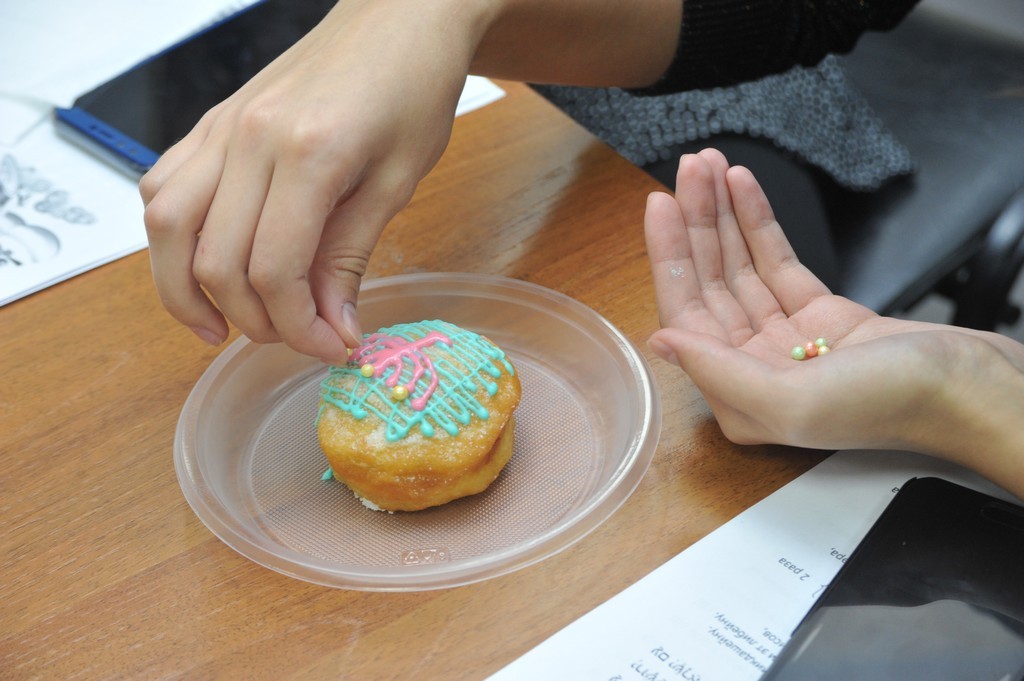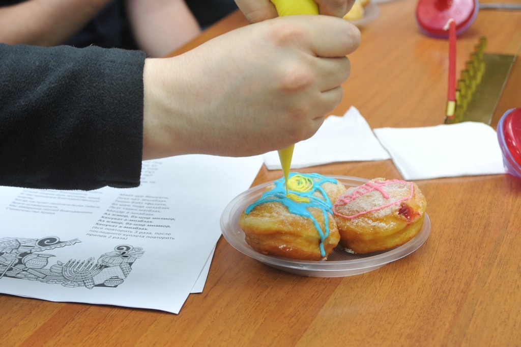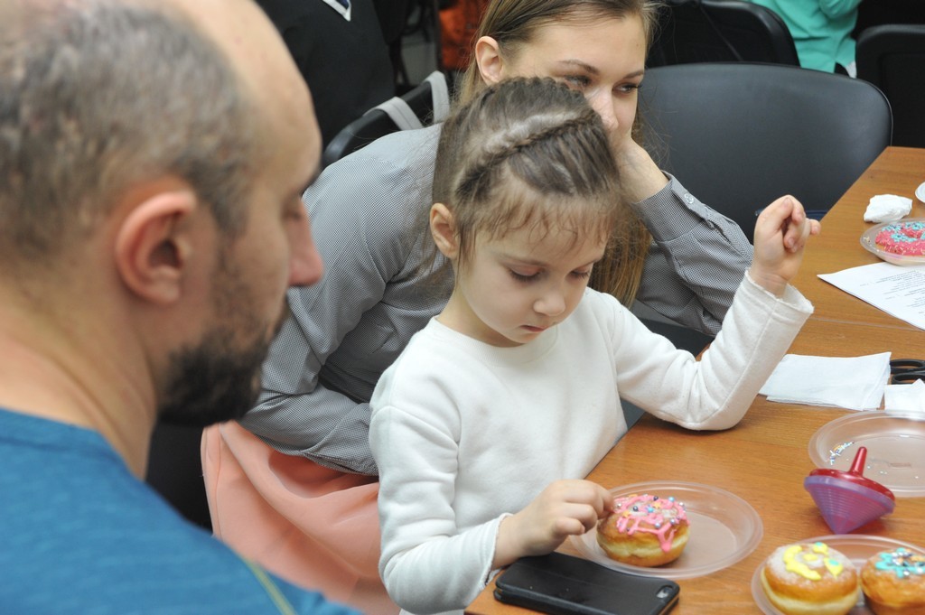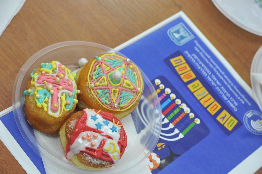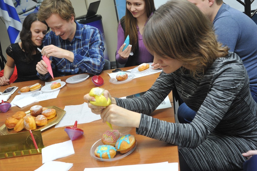 В этот вечер студенты ульпана и члены их семей, пришедшие на праздник, познакомились с историей Хануки, традициями и атрибутами праздника, а также попробовали раскрасить традиционные пончики — суфганийот.