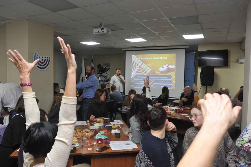 Огромную радость студентам доставила веселая викторина о Хануке, а продолжился вечер исполнением популярных ханукальных песен.