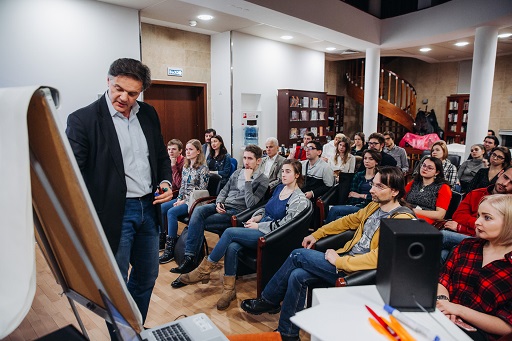 Алекс Гамарник читает лекцию на бизнес-семинаре