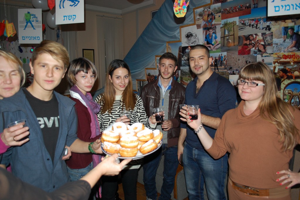 Мадрихи, сотрудники и посетители ИКЦ с удовольствием спели ханукальные песни «Сеививон», «Маоз цур ешуати», а после всех собравшихся ждало ханукальное угощение — сладкие пончики