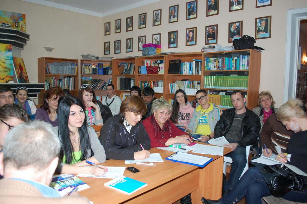 80 человек сели за парты ульпана ташкентского ИКЦ. Люди разных возрастов с интересом слушают преподавателя, изучая новый для себя язык. Постигать новую науку студентам поможет преподаватель Евгений Выгорницкий, имеющий многолетний опыт и прошедший курсы повышения квалификации учителей в Израиле и в Москве.